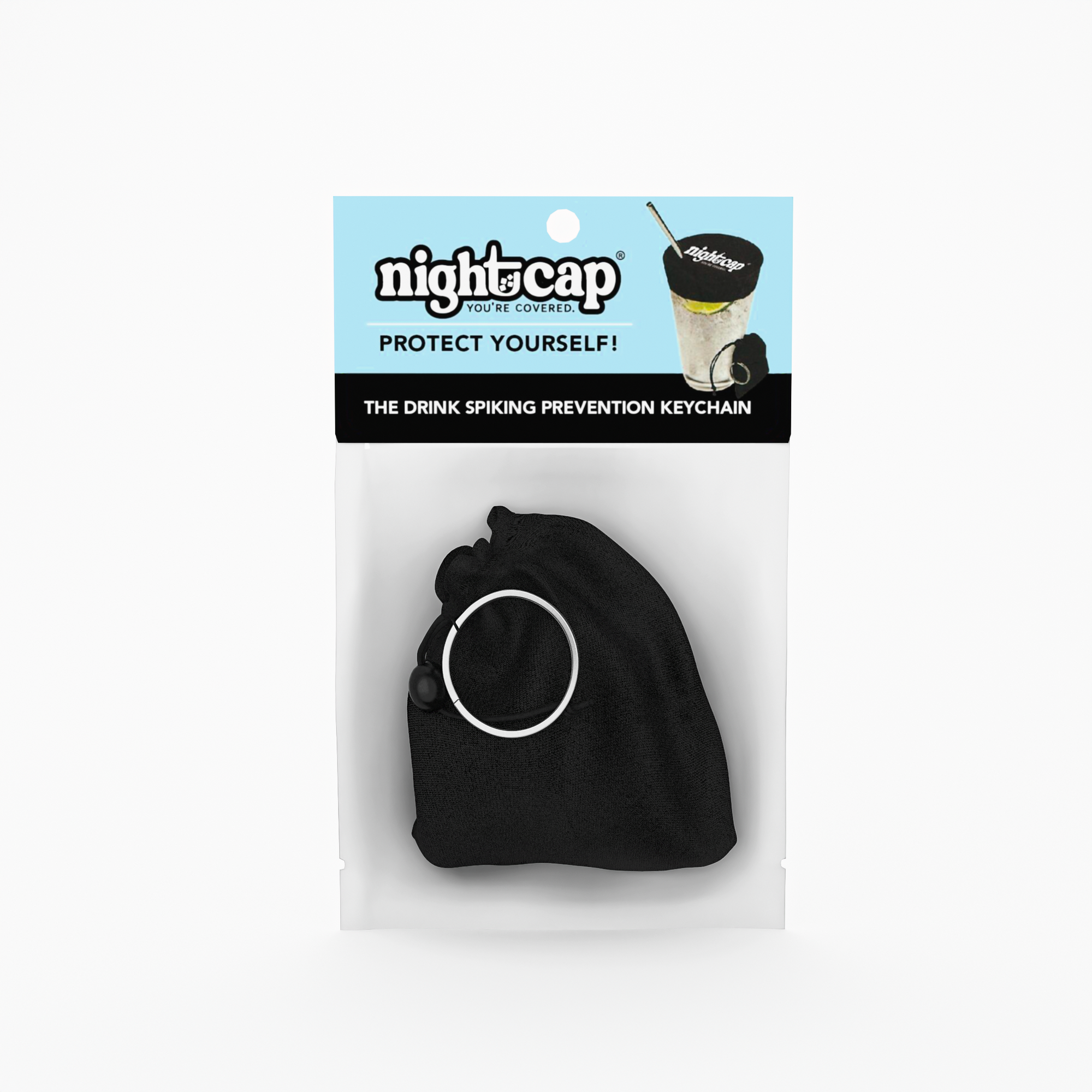 Nightcap is a patented drink spiking prevention scrunchie - it covers cups and glasses to prevent pills and powders from being dropped into a drink.